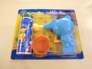 シャボン液をつけて、鉄砲を打つとシャボン玉が出てきます!持ち手の部分がクマのようなシルエットになっていて、マジックで顔や絵を描いて、オリジナルの鉄砲が出来ます! 756円(税込) |