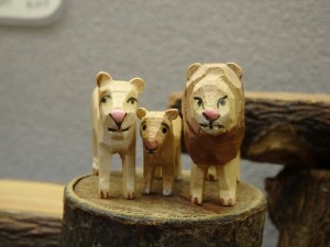 ドイツのヴェルナー社製、『ライフェンドレーン』という製法で作りだされたミニチュア動物です。ライオンの親子が切り株の上から、動物たちを見下ろしています。 ライオン オス・メス各1,188円(税込) ライオン子(中央)1,296円(税込) |