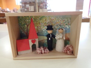 小さな箱の中にミニチュアでつくられた「結婚式」。ちょっとした贈り物にオススメです。 2,052円(税込) |
