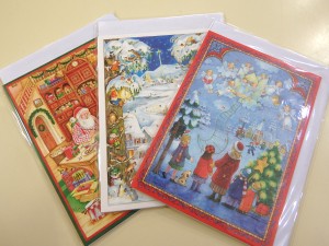 表紙がアドベントカレンダーになっていて、中にメッセージを書き込めます。プレゼントに添えたり、定形外郵便で送ることもできます。 一枚410円(税込) |