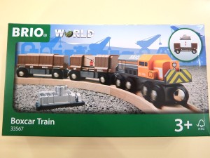 ユニオンエンジンに2両のボックスカーのセットです。他の車両と連結可能なので、合わせて遊ぶとさらに楽しいですよ~!! 3,240円(税込) |