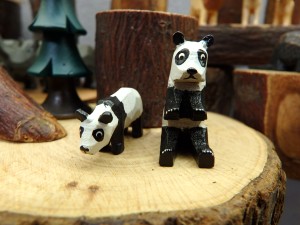 ライフェンドレーンというろくろを使った技術で作られる、ヴェルナーのミニチュア動物。いま話題のパンダの親子の紹介です。左が子ども、右が親です。 左972円(税込)・右864円(税込) |