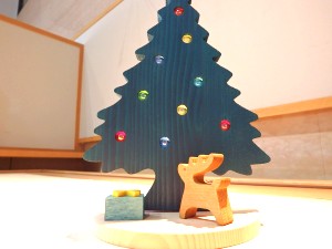 クリスマスツリーにビー玉の飾りが埋め込まれており、光に透かすとビー玉がきらきら輝きます。窓際やロウソク、ライトの側などお勧めです。台含め高さ約24cm、横約17cm。ビー玉の色は青、緑、黄、赤、水色。 3,240円(税込) |