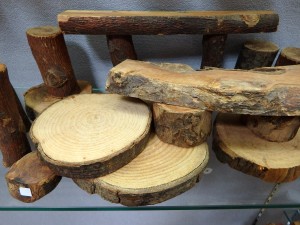 粗い木肌と手触りが特徴で、一つずつ形が違います。単体で飾ったり、ミニチュアの動物やおもちゃを置いたり、お部屋のインテリアとしてお使いください。 白シール付ひとつ250円、その他ひとつ300円(税込) |