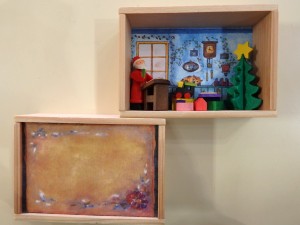 小箱の中にツリーとサンタが飾られています。裏には花柄の絵も描かれており、ちょっとした贈り物にオススメです。縦約3cm×横約9.5cm×高さ約6.5cm、ドイツ製です。 ひとつ2,376円(税込) |