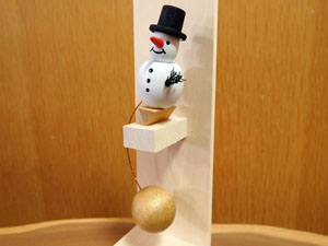 ドイツ・ヴェルナー工房制作の、ゆらゆらと揺れる高さ約5cm(雪だるま部分)のやじろべえです。 1,728円(税込)※ディスプレイ台は別売り(800円)です。 |