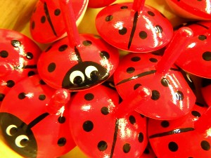 黒い顔に真っ赤な体の、てんとう虫のコマです。回して遊ぶのは勿論、机や棚に置いておくだけでも、楽しい気分になりそうです。 ひとつ324円(税込) |