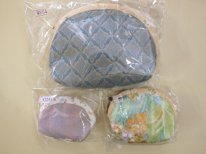 布製のポーチです。日用品や小物などを入れたり、他にも使い方はそれぞれです。柄は写真の他にもありますので、お好みのひと品をどうぞ。 上段864円(税込)・下段左324円(税込)・下段右540円(税込) |