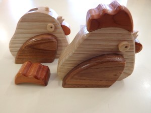 ゼペット工房の指導員が作ったオリジナル商品です。一見鳥の置き物ですが、トサカを取ると印鑑の収納スペースがあります。中に入れておけば無くさず安心です! ひとつ1,200円(税込) |