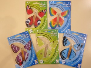一見なんでもない蝶ですが、羽の部分をくるくると巻いて本に挟んでおくと、開いた時に飛び出します。緑、青、赤、紫、虹色などがあります。 ひとつ475円(税込) |