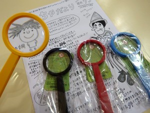 軽くて丈夫な虫めがねです。赤・青・黄色・黒の4種類。色々なものを拡大してみよう! 324円(税込) |
