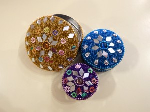 カラフルなビーズがついたアルミ製のケースです。大きさによって価格が異なります。アクセサリーなどの小物を入れたり、薬を入れておくことができます! 小300円(税込)・中390円(税込)・大480円(税込) |