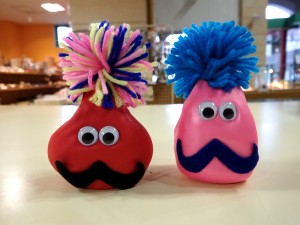 ゴム風船の中に小麦粉が入っているので、自由自在に顔の形を変えることが出来ます。風船や髪の色はそれぞれ異なっています。爪やとがったものがささると破けてしまうのでお気をつけください。 ひとつ324円(税込) |