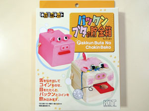 ブタ貯金箱の工作キットです。舌を引き出してコインをのせ、目をたたくとパックンとコインを飲み込みます。 1,296円(税込) |