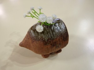 お茶碗やマグカップを作っている開盛窯さんの新作です。ちょっと味のある一輪挿しです。ワイヤープランツなどの観葉植物や、庭に咲いている花を挿すことができます。 850円(税込) |