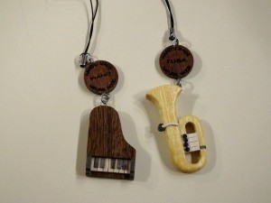 いろんな楽器がモチーフになったストラップが人気です。写真はピアノとチューバですが、他にもトランペットやギターなど種類があります。 ひとつ990円(税込) |