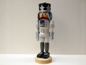 白い服に銀の装飾の王様くるみ割り人形です。高さ39cm・ドイツ製。※装飾用として作られているため、実際にくるみを割ることはできません。 26,400円(税込) |