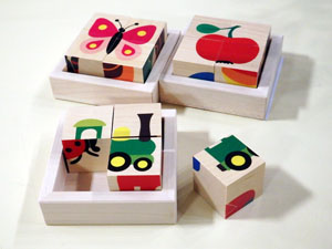 スイス・キーナー社製の6種類の絵合わせパズルができる木製キューブパズルです。ピースが4個なので小さなお子さまでも楽しめます。 7,700円(税込) |