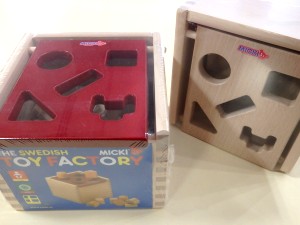 子どもたちは穴にものを落とすのが大好きで、ブロックが落ちたあとフタを開け中身を確認、繰り返し遊びます。ブロック5種各3個入り。 白木 9,350円(税込)赤 9,900円(税込) |