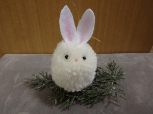 毛糸でつくられたうさぎの置き物です。価格もお手頃で、玄関先などに飾っておくことができます。 550円(税込) |