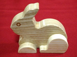 卯年にちなみ木工房ゼペット指導員が製作したうさぎの置き物です。大きさは縦横約8cm、数量限定です! 600円(税込) |