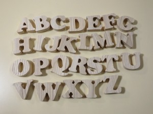 一文字約4cmの木製アルファベットは飾りとして、工作用としてなど人気です。年齢を問わずお名前の文字を購入する方が多いです。 ひとつ80円(税込) |
