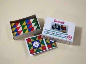 大人気のマッチ箱シリーズ。こちらは、小さな三角柱を使ってモザイク遊びができます。マッチ箱に収納できるので、持ち運び便利です。 660円(税込) |