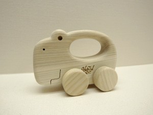 無塗装で価格もお手頃!で人気の動物車。このかばは、体の部分が持ち手になっており、お子様でも握りやすくなっています。 1,300円(税込) |