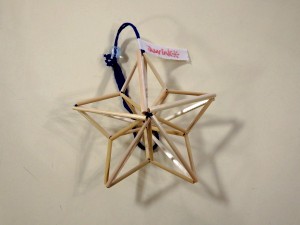 近年の北欧ブームで人気のヒンメリです。遠軽町で作られた麦わらを使って作られています。窓の横や車のルームミラーなど、ちょっとしたスペースでも存在感抜群です。 880円(税込) |