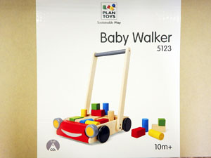 カラー積木13個と白木積木11個がセットになった手押し車です。ハンドルは2段階に高さを調節できます。 16,170円(税込) |