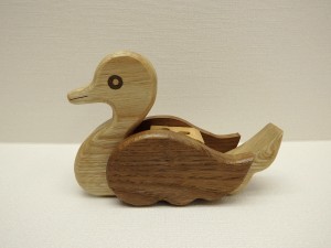 あひるの背中にペンを立てる場所が3ヶ所ついています。無着色なので、木目や色合いを楽しむことができます。 880円(税込) |