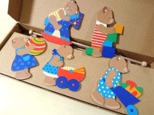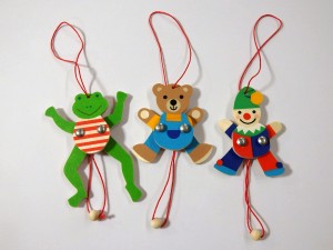 ひもを引っ張ると手足が動く仕掛け人形です。この他にも、うさぎ・こびと・サンタがあり、お土産にもオススメです。 ひとつ660円(税込) |