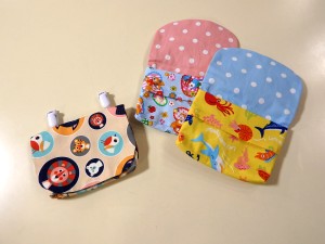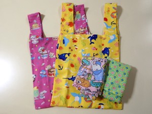 B5サイズのノートがすっぽり入る大きさです。底マチはありませんが、ちょっとしたお買い物の時に財布やポーチを入れたり、お子さまが使うサイズにちょうどいい大きさです。 ひとつ550円(税込) |