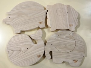 年間通しておうちで活躍する木製のなべしきです。すべて動物のデザインでぶた、ひつじ、くじら、ぞうの4種類となっています。 ひとつ730円(税込) |