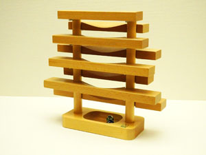 玉が木の鍵盤を伝うたびに雨だれのような優しい音が聞こえてきます。鍵盤を並び替えて音階に変化をつけることもできます。スイス・アルビスブラン社製。 22,000円(税込) |