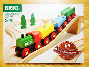 1958年に初めて発売されたBRIOレールウェイセットからインスピレーションを受けて誕生した、65周年の記念レールセットです。 11,000円(税込) |