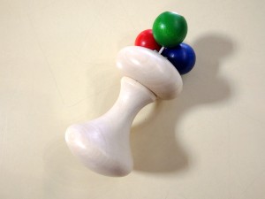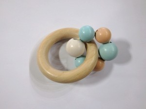 木製リングとカラービーズを組み合わせたラトルです。赤ちゃんがつかんだり振ったりすることで微細運動能力を高めます。 2,090円(税込) |
