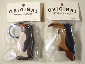 ペンギンとオオハシの木製キーホルダーで、それぞれ足元と止まり木にメジャー(測り)がついています。カバンにつけておくと便利です! ひとつ1,320円(税込) |