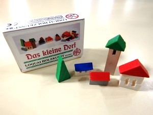 全てのパーツがマッチ箱サイズに収まる、ヨーロッパの小さな村を感じさせる積木です。同シリーズで赤白の家が作れるハウスバウなどと組み合わせることもできます。 825円(税込) |