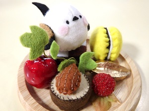 町内のフェルト作家さんお手製の季節飾りです。シマエナガとおいしそうなチョコスイーツが乗ったバレンタインにぴったりの作品は数量限定のためお早めに! 990円(税込) |