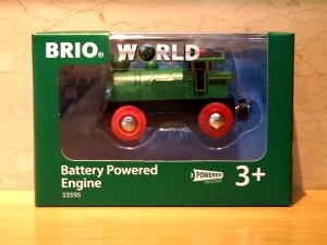 クラシックタイプの電池で動くBRIOの機関車です。前進・後進・ヘッドライトが点灯します。 2,750円(税込) |
