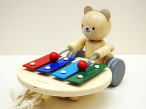 引っ張るとクマさんがシロフォンをたたくプルトイです。ひもを横に引っ張ると別の鍵盤をたたきます。 7,920円(税込) |